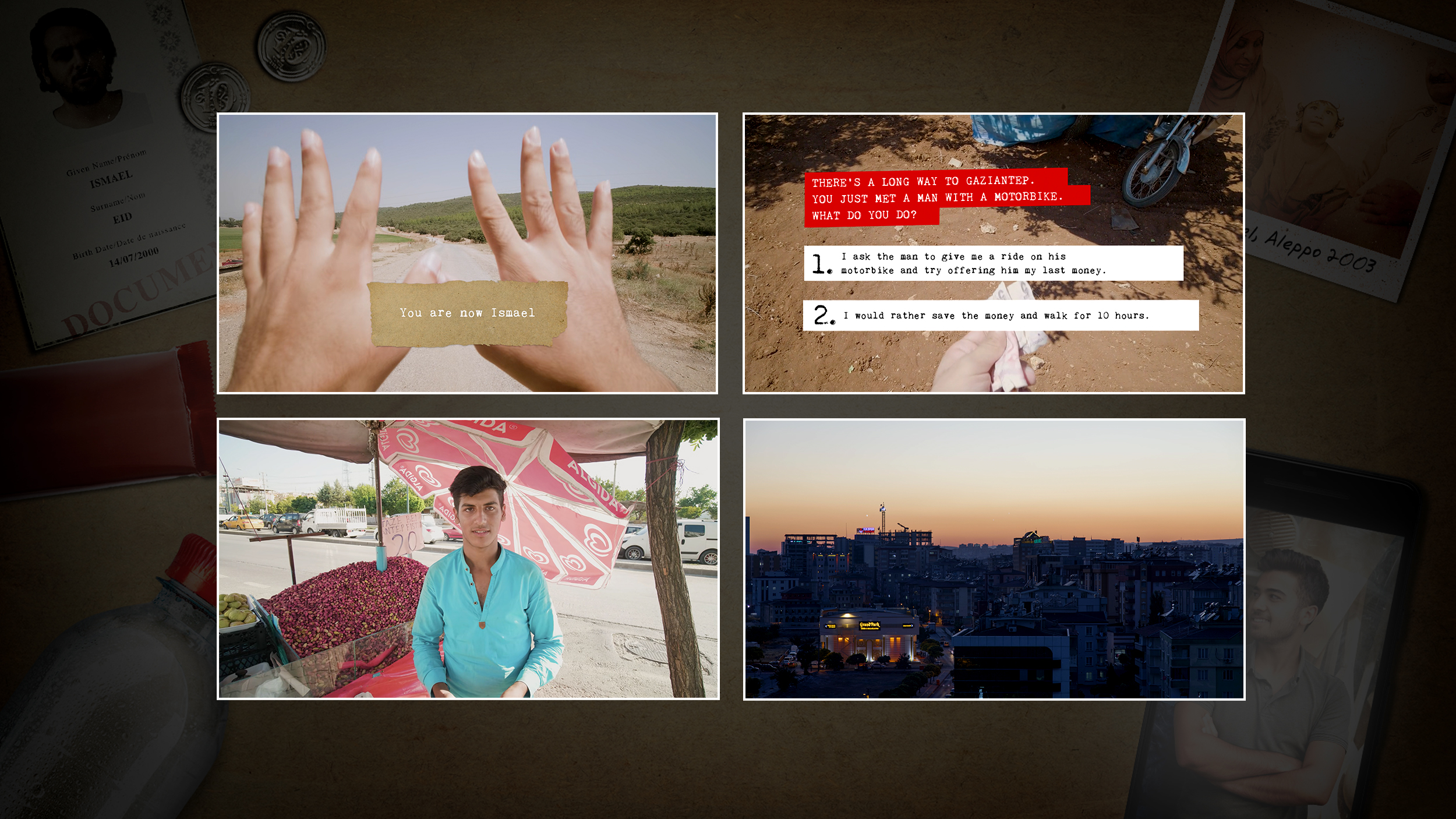 “Brothers Across Borders” is an interactive film based on the true stories of Syrian refugees in Turkey. You are Ismael. A 21-year old Syrian refugee on a mission to find his brother, Muhammed. Muhammed, as the oldest brother, went to Turkey to find a new and safer home for the family, but never returned to Syria. Nor has he contacted the family, since he left Turkey. Now it’s all up to you. The future of Ismael, Muhammed and their entire family is in your hands.